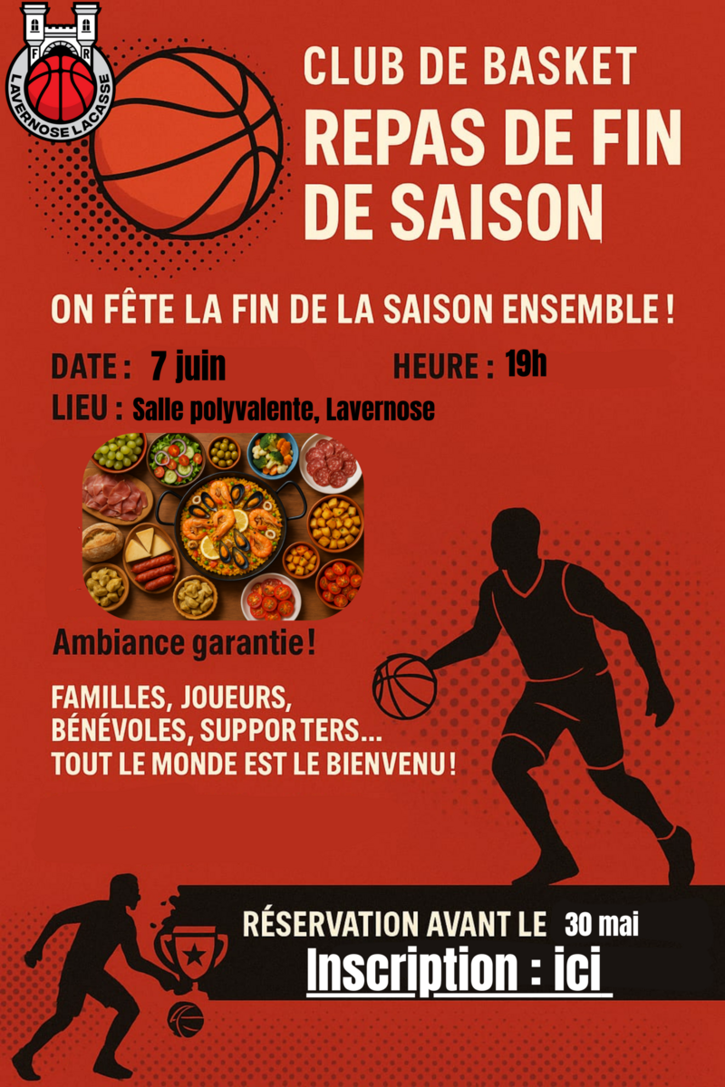 La saison 2024-2025 s'achève, encore une fois bien remplie, nous vous proposons comme chaque année de nous réunir autour d'un repas pour clôturer cette belle saison.